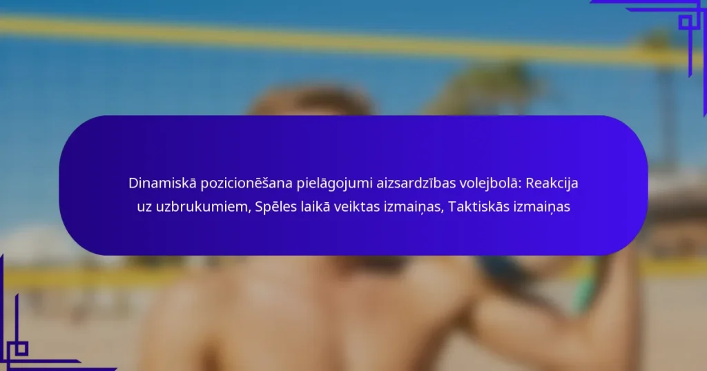 Dinamiskie pozicionēšanas pielāgojumi aizsardzības volejbolā ir būtiski spēlētājiem, lai efektīvi pretotos pretinieku uzbrukumiem reālajā laikā. Analizējot ienākošo sitienu raksturu, spēlētāji var mainīt savu pozicionēšanu un taktiku, lai uzlabotu savas aizsardzības spējas. Šie spēles laikā veiktie pielāgojumi ne tikai uzlabo individuālo sniegumu, bet arī veicina komandas saliedētību, ļaujot spēcīgāk reaģēt uz dažādām uzbrukuma stratēģijām. Key sections in the article: Toggle Kas ir dinamiskie pozicionēšanas pielāgojumi aizsardzības volejbolā? Definīcija un dinamiskās pozicionēšanas nozīme Aizsardzības pozicionēšanas galvenie principi Biežākās situācijas, kas prasa pielāgojumus…