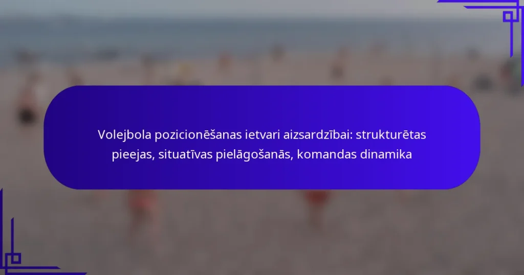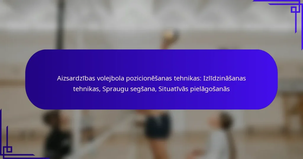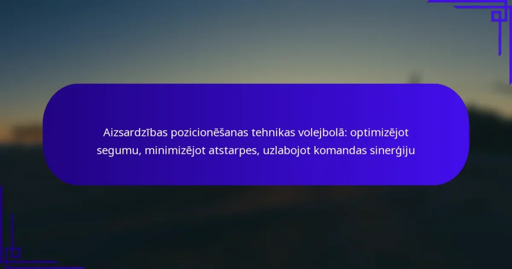 Aizsardzības volejbols prasa spēlētājiem apgūt būtiskas pozicionēšanas tehnikas, lai efektīvi segtu laukumu un reaģētu uz pretinieku uzbrukumiem. Galvenās stratēģijas ietver zemas pozīcijas uzturēšanu, saskaņošanos ar komandas biedriem un gatavību ātrām kustībām. Koncentrējoties uz vingrinājumiem, kāju darbu un komunikāciju, spēlētāji var uzlabot savu spēju paredzēt un reaģēt spēļu laikā.