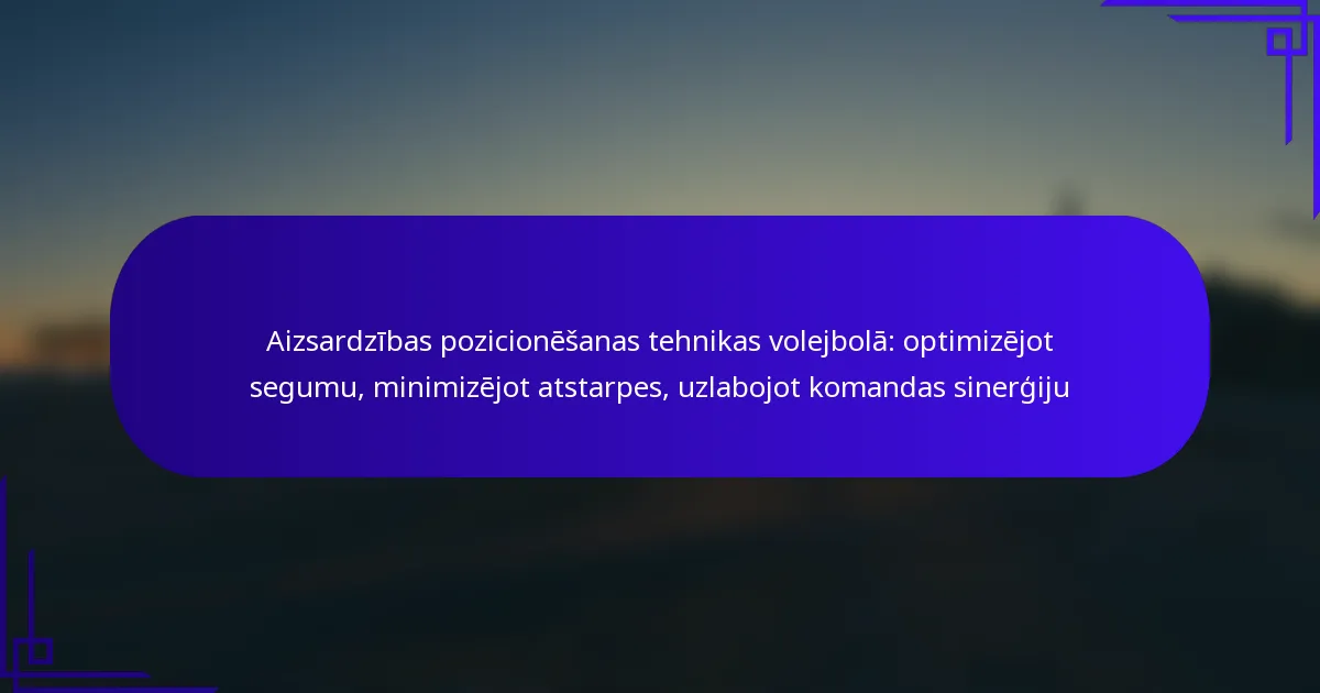 Defensīvās pozicionēšanas tehnikas volejbolā ir būtiskas, lai optimizētu segumu, samazinātu atstarpi un uzlabotu komandas sinerģiju. Stratēģiski pozicionējot spēlētājus un veicinot efektīvu komunikāciju, komandas var pielāgoties dažādām spēles situācijām un nodrošināt, ka visas laukuma zonas ir labi aizsargātas pret pretinieku uzbrukumiem.