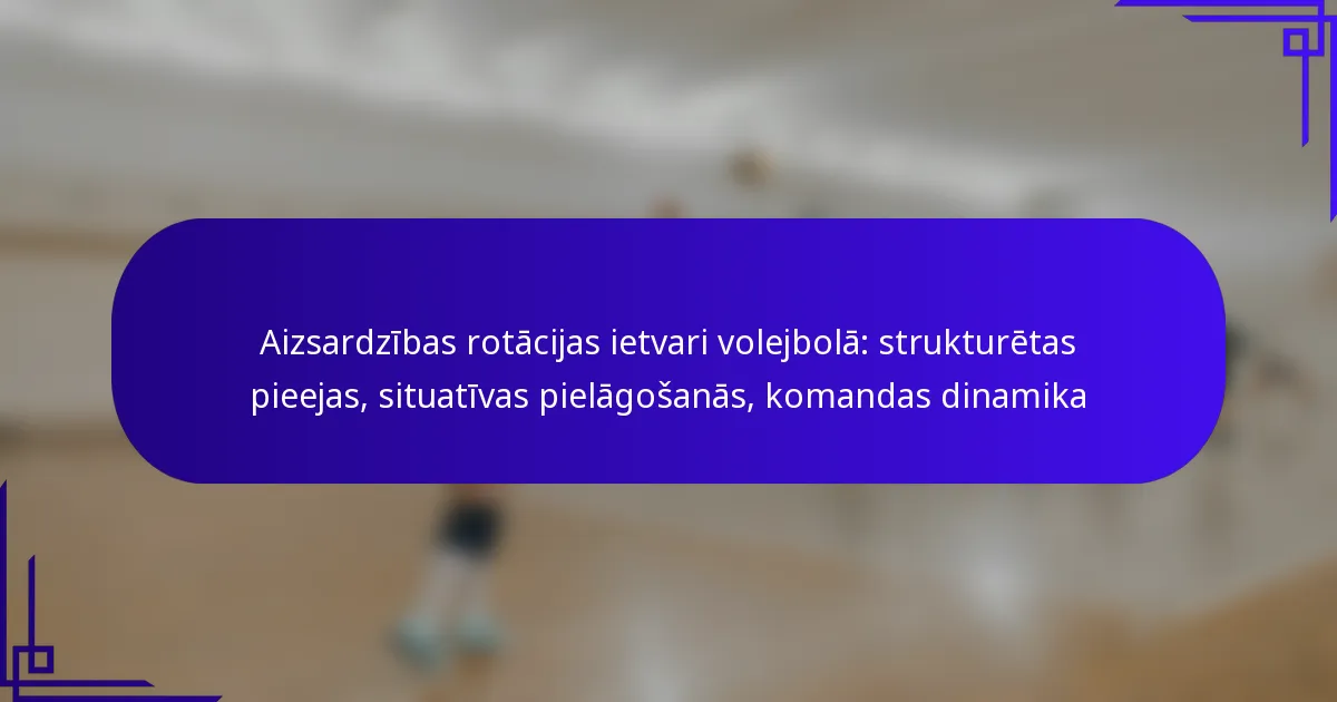 Aizsardzības rotācijas struktūras volejbolā ir strukturētas sistēmas, kas nosaka, kā spēlētāji pozicionē sevi laukumā aizsardzības spēlēs. Šīs struktūras ir būtiskas, lai maksimizētu komandas efektivitāti un pielāgojamību dažādās spēles situācijās.