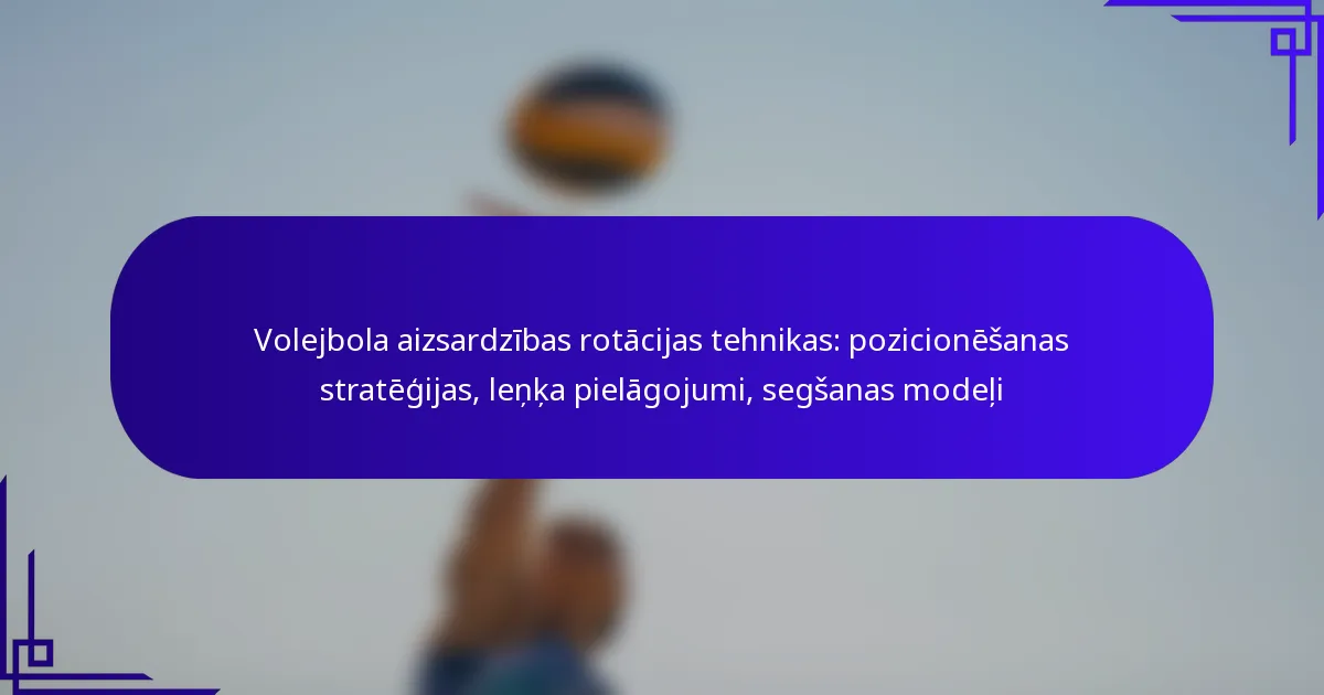 Volejbolā efektīvas aizsardzības rotācijas tehnikas ir vitāli svarīgas komandas panākumiem laukumā. Galvenās stratēģijas ietver spēlētāju lomu izpratni, pozicionēšanas optimizāciju un nepieciešamo leņķu pielāgošanu, lai uzlabotu segumu. Apgūstot šīs tehnikas, komandas var samazināt atstarpes un uzlabot spēju reaģēt uz pretinieku uzbrukumiem, nodrošinot spēcīgāku aizsardzību.